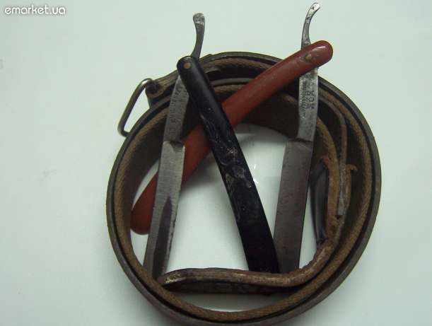 Комплект из двух немецких опасных бритв времён Второй Мировой Войны "Solingen" + кожанный ремень для заточки. На бритвах есть надписи: на первой - 33 Emil Jansen Wald - Solingen, на обратной стороне - Garantie, рукоятка с орлом и змеёй; на второй - 1941 Kaufmann, на обратной стороне - Made in Germany, знак немецкая S со шпагами. 500 грн. за всё" 800 грн-100 $