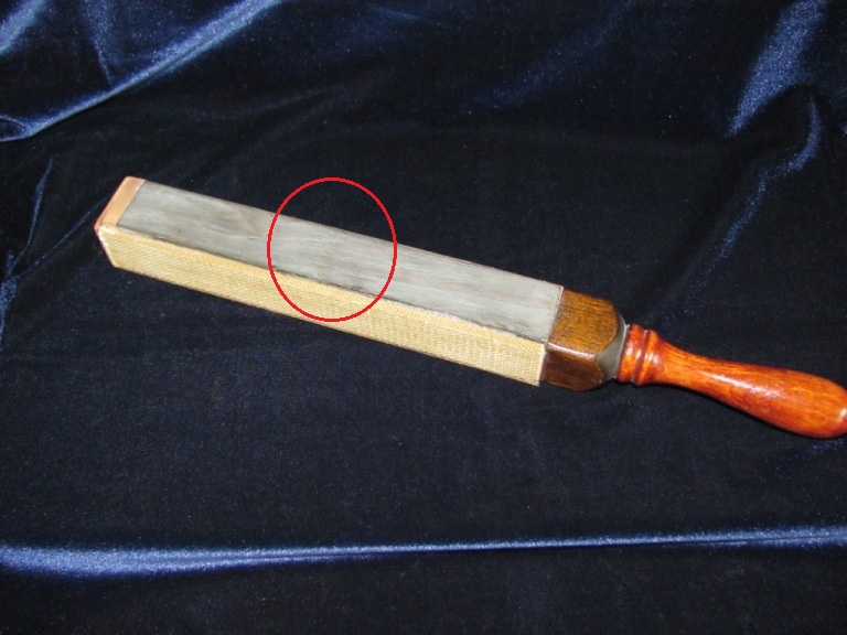 Re: Продаётся от N*X*SПродам 4-х сторонний ремень для правки бритв, камушек на одной стороне, брезент на другой, на третьей и четвертой сторонах кожа. Возраст примерно 40-е 50-е годы, хотя точно не известно. На камушке есть микро трещина ( на фото в красном круге), но точить бритву не мешает.