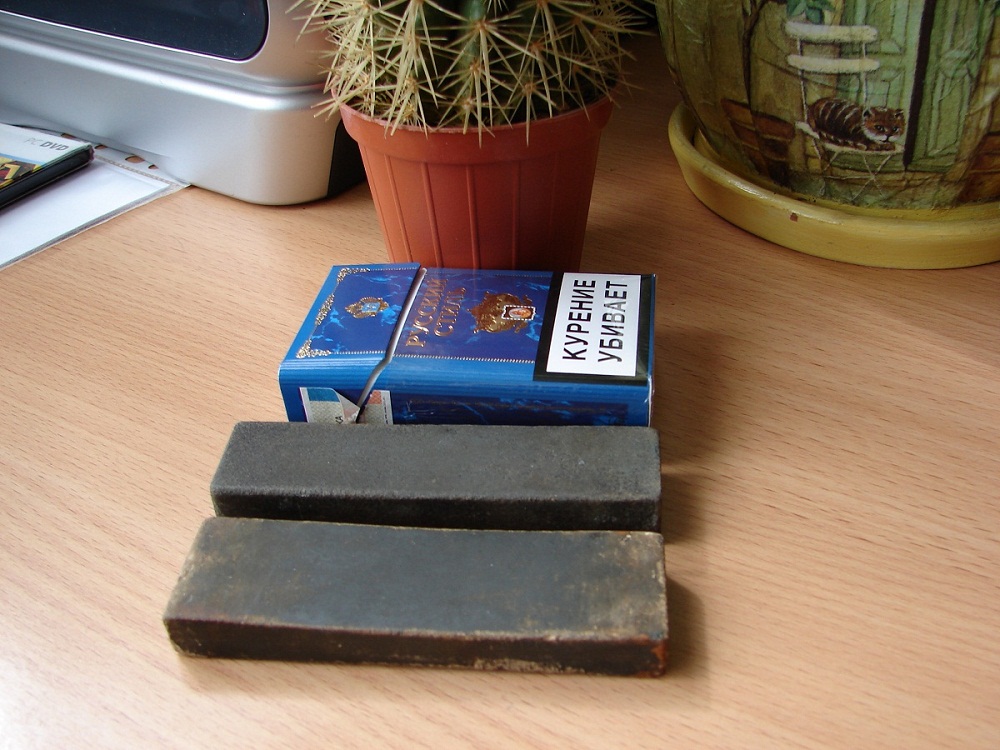 Re: Выбор камней для заточки опасной бритвыНашел сегодня на развале. 60 р. за пару. По виду очень старые. Чем их чистить? И как выровнять поверхность на переднем?