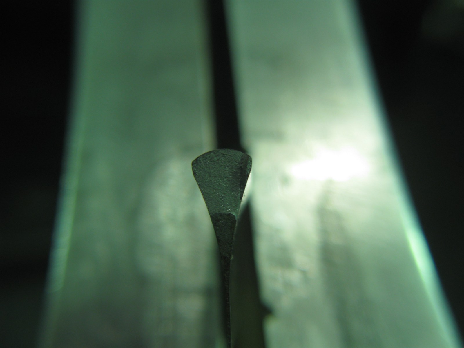 Тест эрля бритвы где не выгорел углерод и самого лезвия ,вернее то что осталось. Зерно на режущей части заготовки крупное ,на эрле -"мука". Тест осколков на твердость: А могла получится обалденная бритва с таким зерном и свойствами. Кесарю кесарево , а слесарю слесарево.