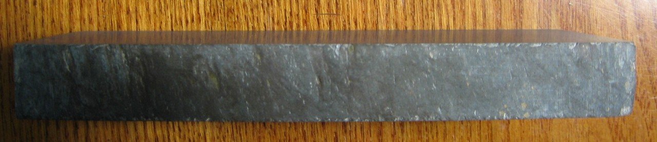 Для природных камней гриты считать не имеет большого смысла, но многие приводят к этому камню 12000 японских грит, как аналог работы на японской водной синтетики. Камень в работе очень тонкий, финишный - доводочный, полирует подводы. К камню прилагается кусочек из того же камня для наведения суспензии - работа будет идти быстрее, но более грубо.