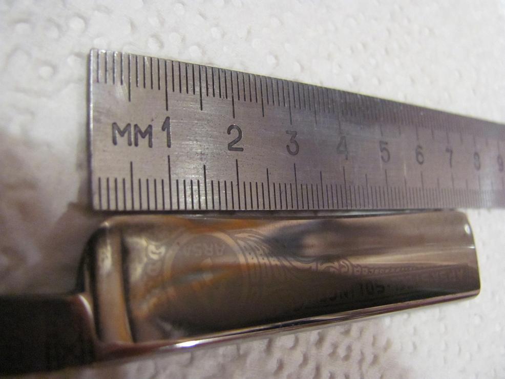 Клеймо, правда "ушло", уж очень ржавчина глубокой оказалась. И ручку менять пришлось. Но главное - жива моя красавица! И бреет - замечательно, вот что значит хорошая сталь!