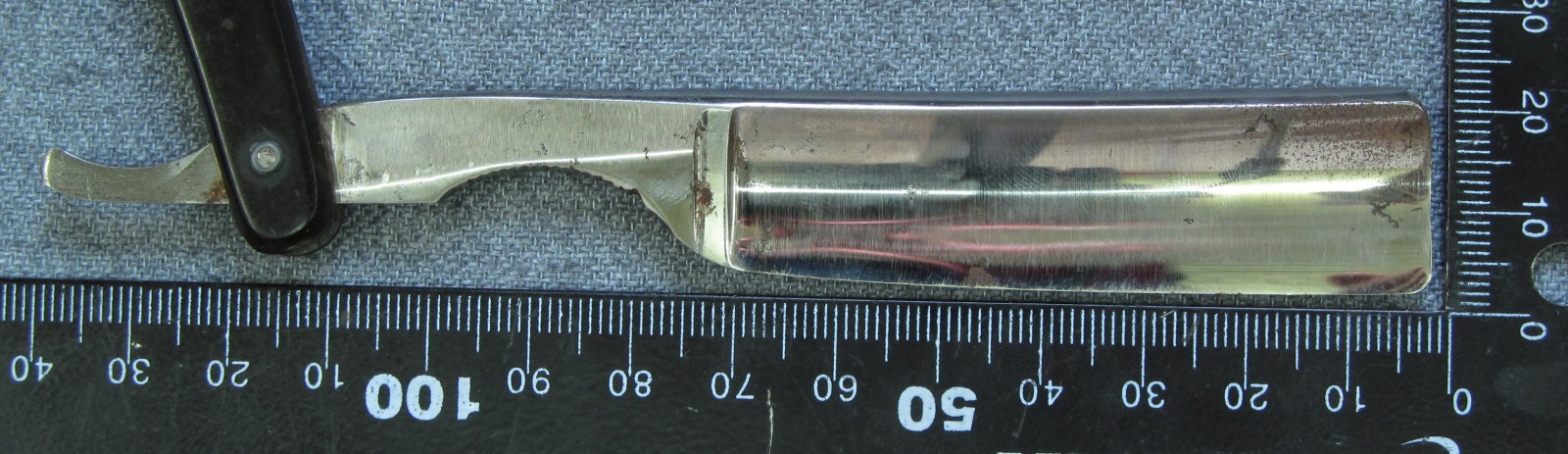Re: Продаёт Кайописание Show ВАЖНО: На РК есть микротрещина. На заточку и бритье это никак не отражается и не отразится. Заметить трещину нельзя ни на фото, ни на видео, ни даже в лупу, только в микроскоп, последние две фото показывают где микротрещина и фото с микроскопа. Может это кому то важно. Начало-середина 19 века, Англия, Клин. Само лезвие с микротрещиной без сколов, в не глубоких рытвинах от ржавчины. Ручка не родная, пластик, ровная, закрывается хорошо. Бритва не заточена! Была заточена и брила отлично, это была моя личная бритва, которой брился я сам, и была до конца отлично заточена, но во время фотосъемки упала со стенда и в районе головки появились видимые маааленькие замины на РК, на видео чуть заметно, поэтому надо будет точить. Клеймо почти полностью стерто, поэтому перспективы для продажи как дорогого 6/8" Бачера крайне низки, однако бреет он так же отлично, как и с клеймом. По остаткам клейма (первая буква M в "made in" и ниже первая часть клейма - буква B в круге (далее должно идти стрела и крест) знатоки могут легко узнать в бритве Wade & Butcher. Большая просьба: смотрите фото и видео, я их делаю как можно более детально, что были видны все детали и недостатки! Видео Show Остальные фото Show