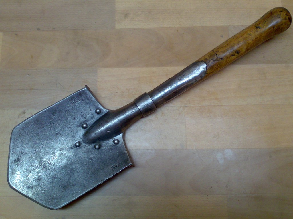 И раз уж о лопатах и кустарях Павлова. Павловская кустарная артель в 1915-1916 годах закупила соответствующее оборудование и начала производить уже уставные малые пехотные лопаты клёпанной конструкции на уровне "Шодуаръ", "Грiевзъ", "З.З.", "Заводъ Бильнесъ"... У меня есть и такая. На ней, как и на лопатке 1915 года, выбиты клейма "П.К.А." и "1916". Так что развивались кустари и производство расширяли и совершенствовали. И если б не