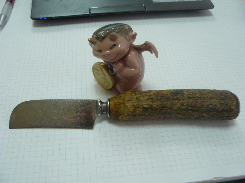 Насколько я знаю, это старая английская бритва из Шеффилда. По словам продавца, это конец 19 века. Но почему она такая "толстая", семь с небольшим мм, я имею в виду толщина обуха? Интересует примерный возраст и стоимость. Рукоять из рога, всего одна небольшая трещинка у пина. Да и вообще, накидайте информации побольше!