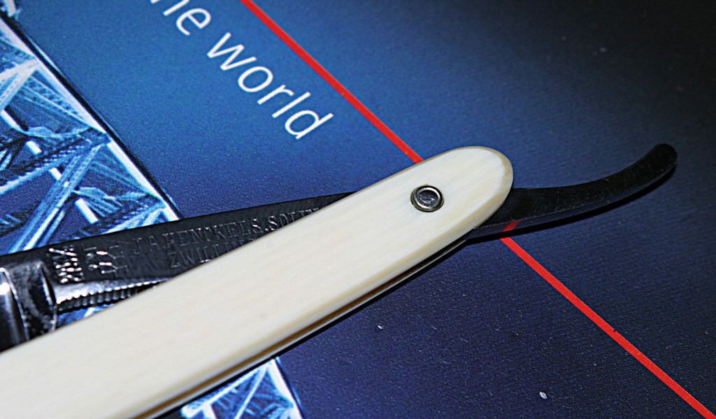 Re: Продам J.A.HENCKELS 275 1/2Из-за чего спор? Все просто... на вид, судя по форме ручки (характерно скошенные фаски) я бы сказал, что это формованный пластик. Но не верить хозяину бритвы, в плане теста на раскаленную иглу, повода нет... Далее остается один вариант, так как моржовый зуб, равно как и слоновый бивень, даже при исключительной полировке оставляет поры (а на фото их нет), так же ручка из слонятины может иметь характерный узор в виде волнистого рисунка, а никак не продольных полос, то думаю, что эта ручка изготовлена из прессованных опилок кости (процесс изготовления детально описал на форуме Архимедесом).