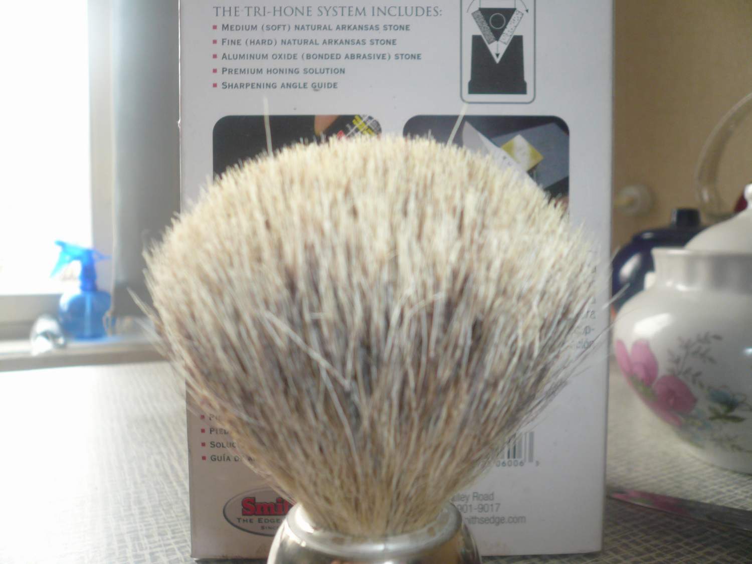 Свиняча щетина очень разная, от очень мягкой до очень грубой. Стоимость хорошего пучка кабаньего стоит 5-10$, остальное - цена за материал ручки, бренд и пр. 3. У меня пена образуется по окружности чашки, путём взбивания мыла на дне чашки, то есть вроде так и должно быть.