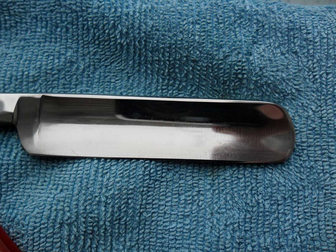 Бритва в отличном состоянии, более того, несколько месяцев брился только этой бритвой. Бритва широкая, мягкая, на мой вкус - очень комфортна. Естесственно, заточена и полностью готова к бритью. Ширина клинка 18 мм, толщина спинки 4 мм.