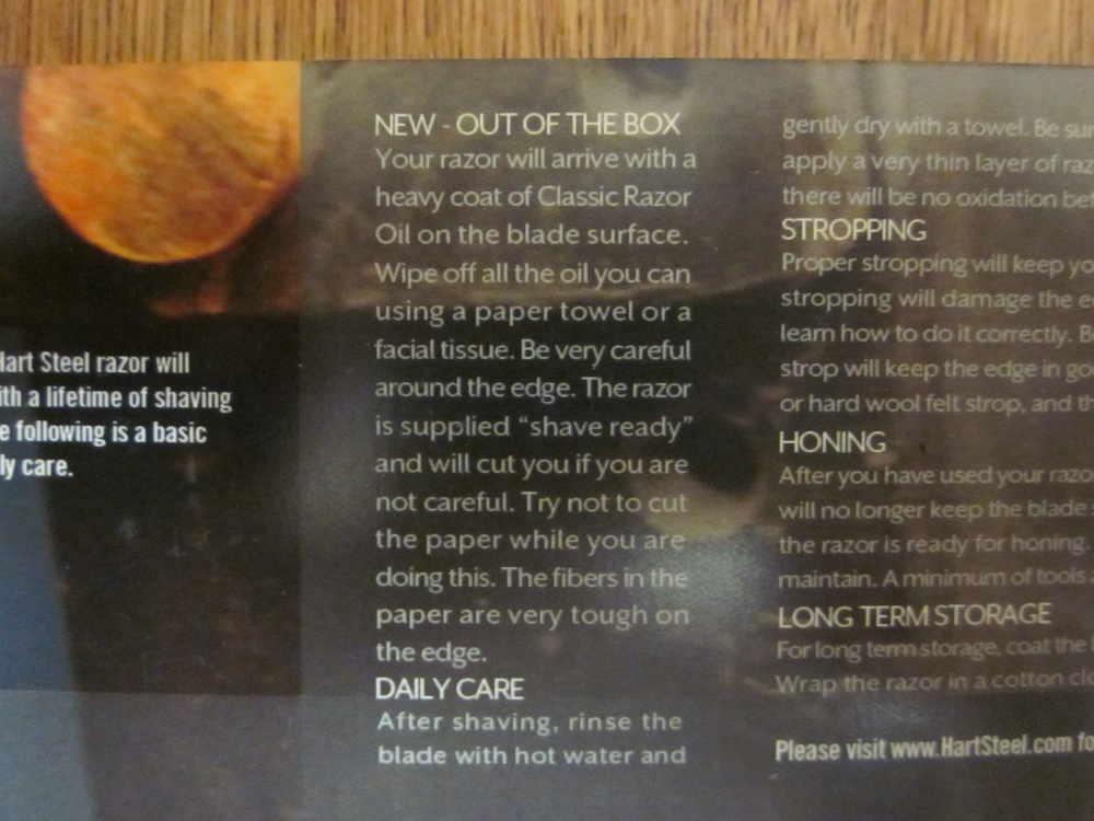 Добавлено спустя 27 секунд: А вот после заточки-уух. Re: Бритва HARTSTEELПодожди чуток. Выложу коробочку и вкладыш. Там все будет и про нечистый Харт и про шей реди.