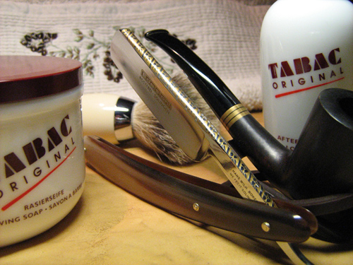 Вот моя двойная классика и двойное удовольствие: бритва и трубка. Ну, с таким мылом иначе нельзя было...