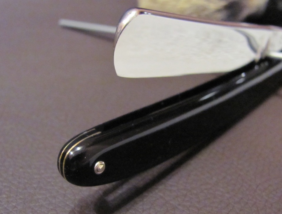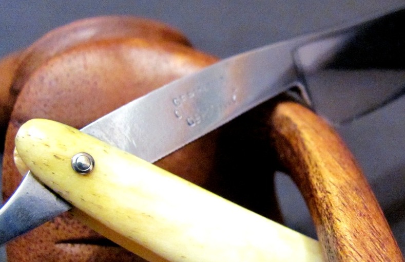 Параметры: ширина 16,5мм, обух 4,3мм. Ручка из кости, ровная, без потерь. Возраст- скорее всего довоенный выпуск на экспорт. Бритва прошла процесс реставрации и заточки лично мной, пины , геометрия, клеймо производителя были сохранены. Продано Oxford Razor Show