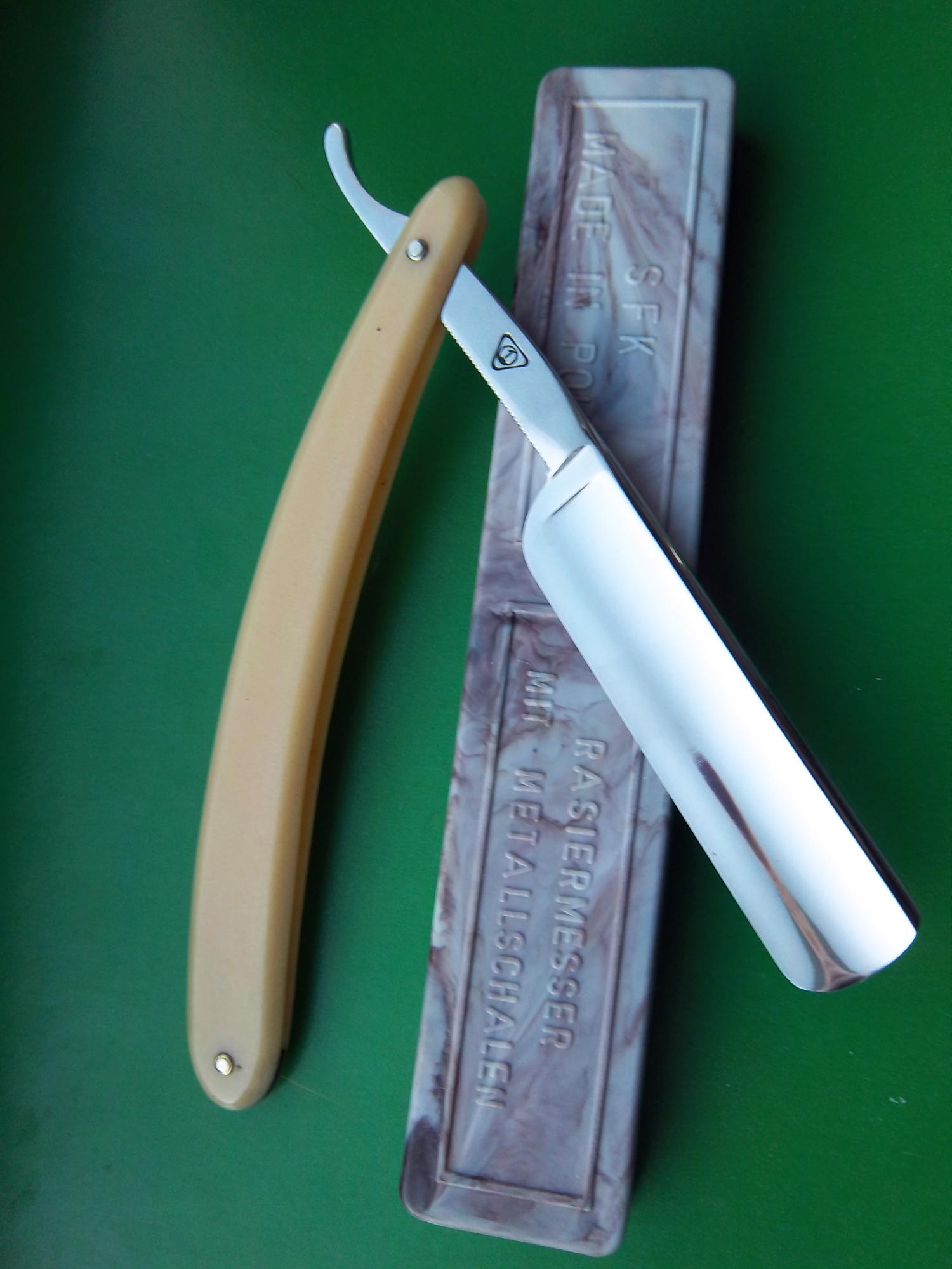 Re: Продаётся от mantisБритва опасная Wapienica, производство Польша, шестидесятые годы прошлого века. Ширина полотна 18 мм. Футляр от бритвы другой модели этого же производителя.