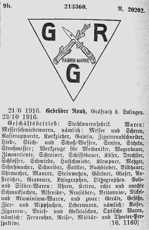В 1916 году фирма Gebrüder Rauh, Solingen-Gräfrath производила: