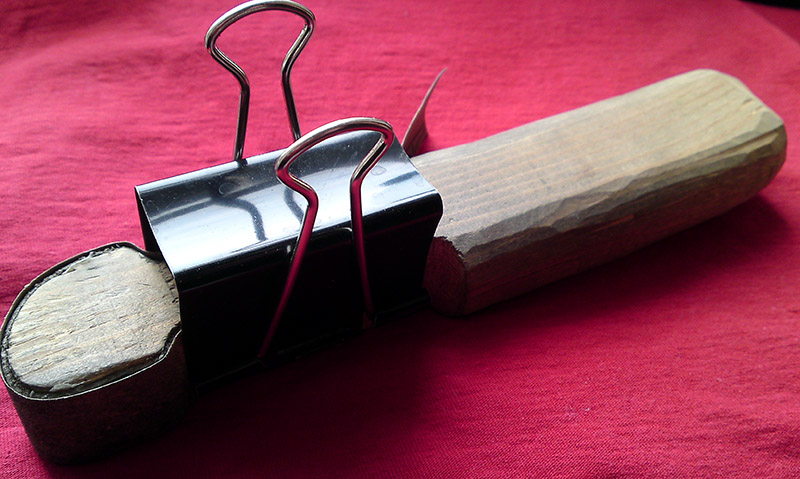 1.Стандартный зажим 2.Кругляшок из кожи Может у кого то есть более разумные решения ....