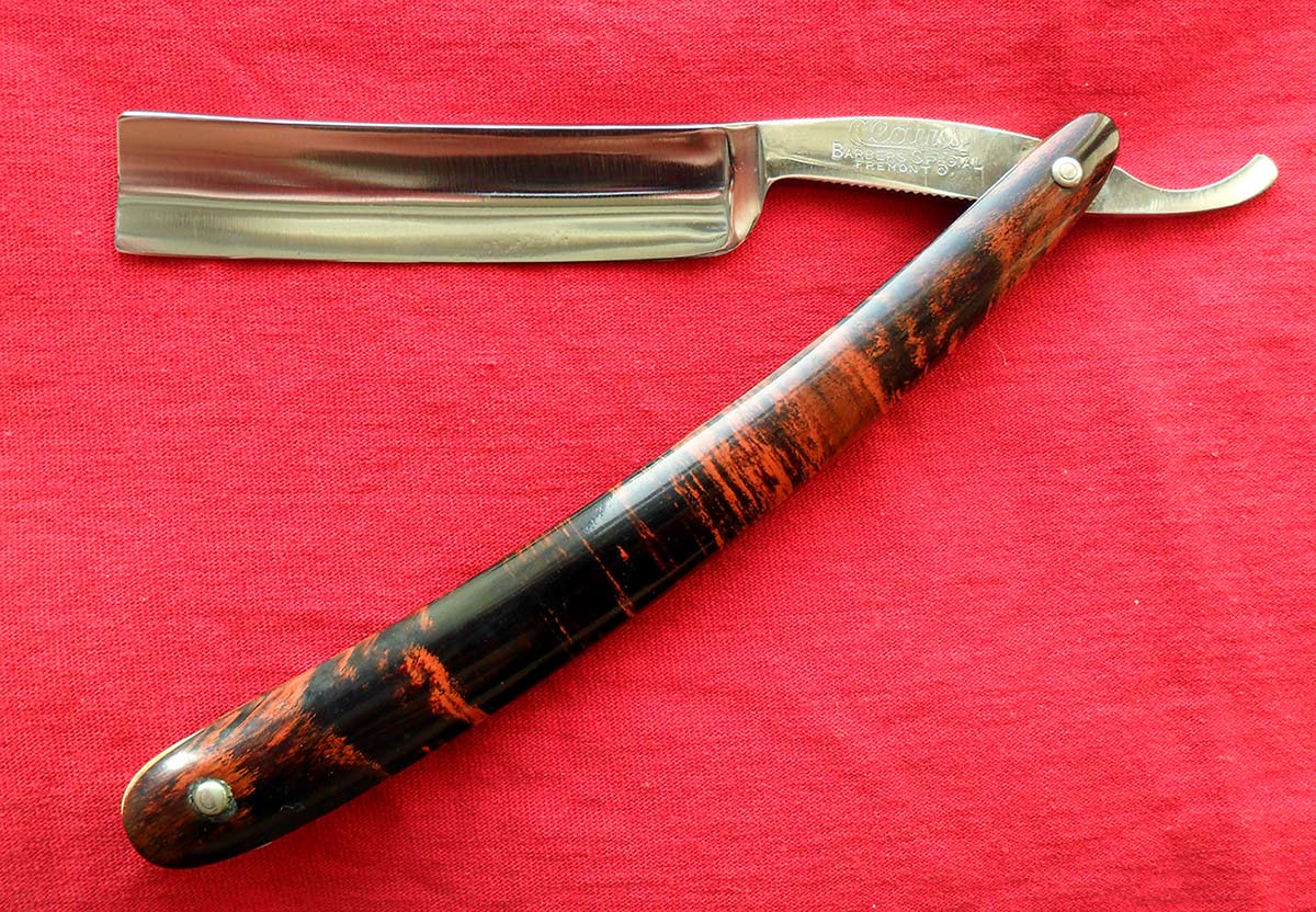 Надпись на полотне: WHOLE HOLLOW GROUND Ручка - рог, в неплохом состоянии. По центру предыдущим владельцем установлен доп. штифт. Довольно тонкосведенная бритва. Заточена и полностью готова к бритью. Ширина полотна 18 мм, толщина в обухе 5,5 мм.