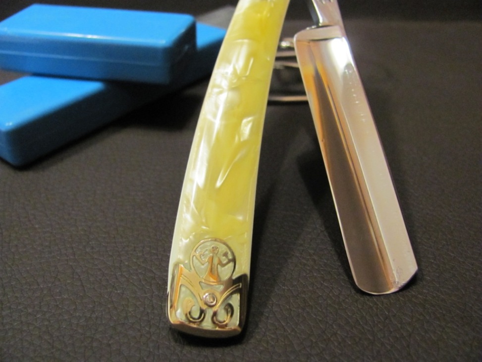 Историю компании можно найти здесь на форуме, воспользовавшись поиском. Краткая характеристика: Ширина полотна 15 мм, обух 4,8 мм, полотно-полуклин. Ручка: ручная работа нашего мастера , пины красивые, дерево просто сказка, ручка сделана на высшем уровне. В комплект входит родной чехол, который всетаки дожил до нашего времени, что является не частым событием. Бритва заточена и готова к бритью. Пяточка не поддалась заточке, видимо сказалась "особенность" геометрии обушка. Цена реставрированной , одетую в красивейшую оправу бритвы знаменитого производителя 120$ включая доставку по почте. ПРОДАНА George Wostenholm Show