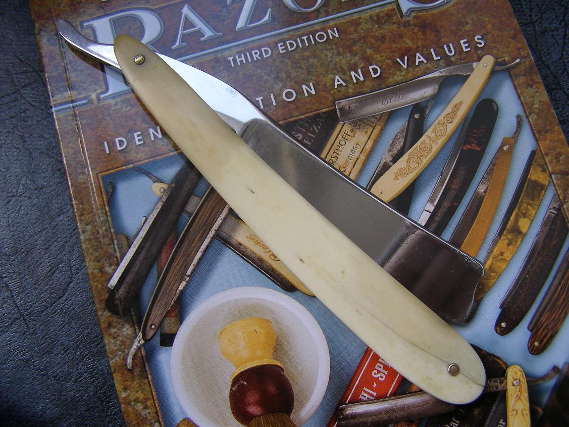 Изначально на лезвии присутствовала гравировка "Hamburg Ring", однако она "погибла" в неравной борьбе со ржавчиной (на эрле также был толстенный слой ржавчины - под ним клейм не было). Наиболее часто подобной гравировкой клеймились немецкие бритвы, однако изредка встречаются и английские - встречал на еБай.