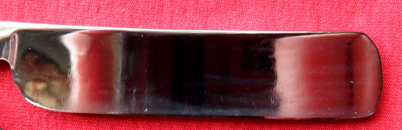 Сведения о производителе: http://straightrazorplace.com/srpwiki/i ... mas_%26_Co" onclick="window.open(this.href);return false; Ручка и пины, по-видимому, родные, клинышек - металл. Ручка - кость, в прекрасном состоянии. Судя по форме ручки, а также по клинышку, предполагаю, что бритва относится, как минимум, к концу XIX века, а скорее - к середине XIX века. Естесственно, заточена и полностью готова к бритью. Ширина полотна 19 мм, толщина в обухе 4,5 мм.