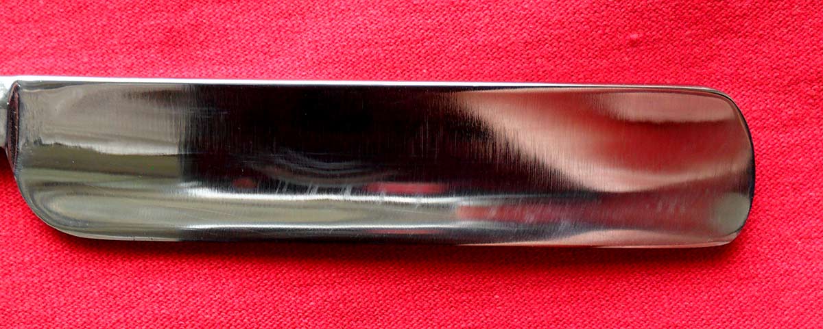 Сведения о производителе: http://straightrazorplace.com/srpwiki/i ... mas_%26_Co" onclick="window.open(this.href);return false; Ручка и пины, по-видимому, родные, клинышек - металл. Ручка - кость, в прекрасном состоянии. Судя по форме ручки, а также по клинышку, предполагаю, что бритва относится, как минимум, к концу XIX века, а скорее - к середине XIX века. Естесственно, заточена и полностью готова к бритью. Ширина полотна 19 мм, толщина в обухе 4,5 мм.