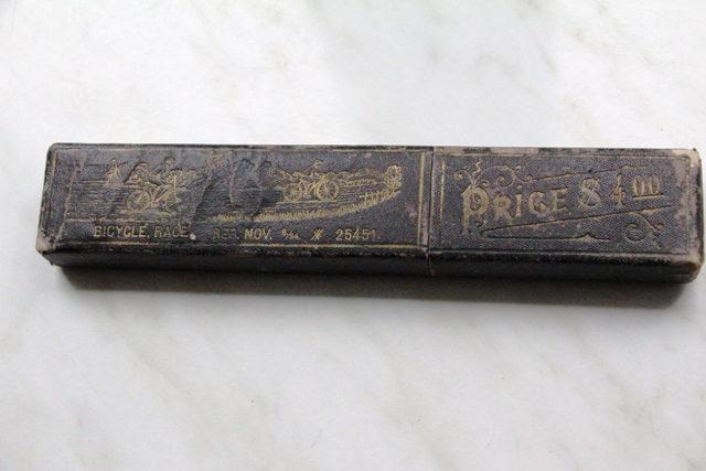 Господа, получилось,один раз профукал,потом 2 года искал и поймал BICYCLE RACE однако конец 19 века. Состояние для этих лет отличное, родная коробка гууд. Есть следы коррозии ,не стал увлекаться полировкой - страх потерять картинку. :o