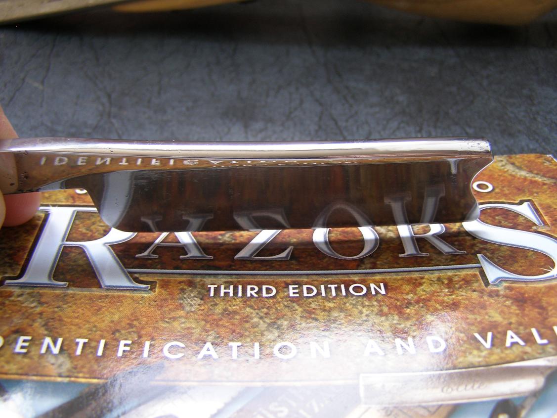 Изначально на лезвии присутствовала гравировка "Hamburg Ring", однако она "погибла" в неравной борьбе со ржавчиной (на эрле также был толстенный слой ржавчины - под ним клейм не было). Наиболее часто подобной гравировкой клеймились немецкие бритвы, однако изредка встречаются и английские - встречал на еБай.