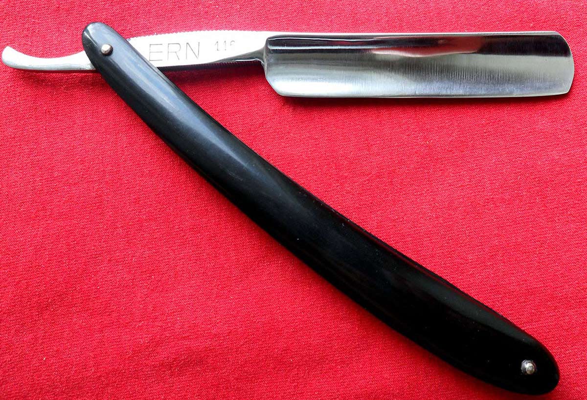 Сведения о производителе: http://britva.ru/forum/viewtopic.php?f= ... 562#p50562" onclick="window.open(this.href);return false; Предполагаю, что бритва относится к 20-30-м годам XX века. Ручка - эбонит. Очень тонкосведенный холлоу граунд, прекрасно точится. Из-за своей тонкости при бритье ведет себя очень деликатно, бритье мягкое и комфортное. Естесственно, заточена и полностью готова к бритью. Ширина полотна 18 мм, толщина в обухе 4,5 мм.