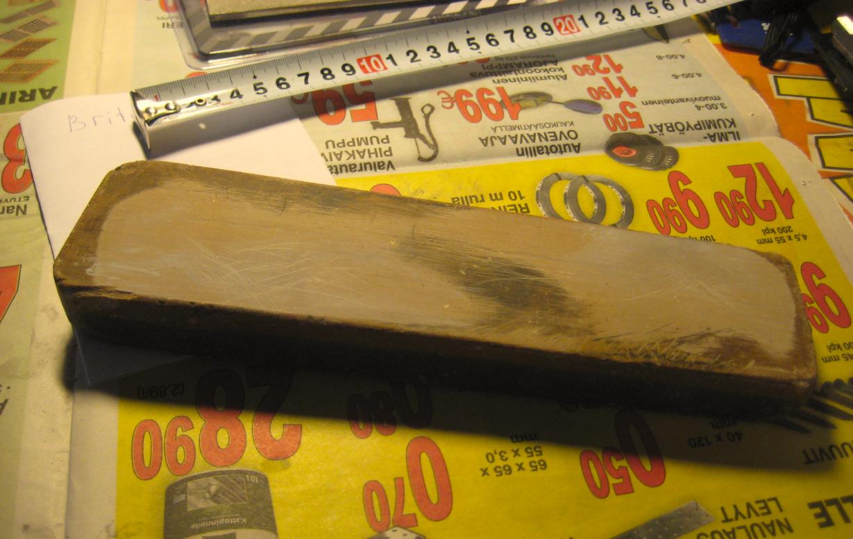 Re: Помогите определить каменьПродолжаю обзор. Отпилил от камня ножовкой по металлу (грязи много было) проблемный кусок, подровнял пока на крупной наждачке на стекле (но плоскость ещё не достаточно ровная). Камень постройнел (новые размеры 24 х 6,8 (5,8) х 18). Вот что получилось (много фоток).