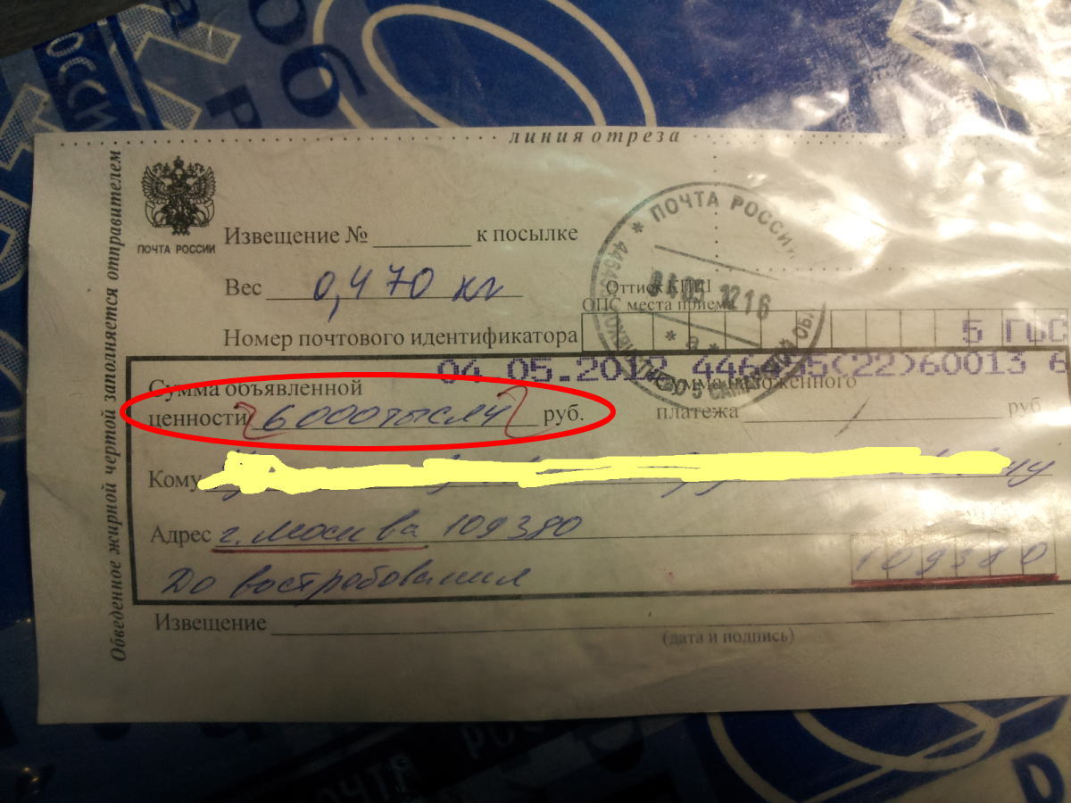 Re: Бритва в ремонт почтойСудя по объявленной стоимости, кто-то очень сильно надеялся, что посылка потеряется в дороге и он получит возмещение