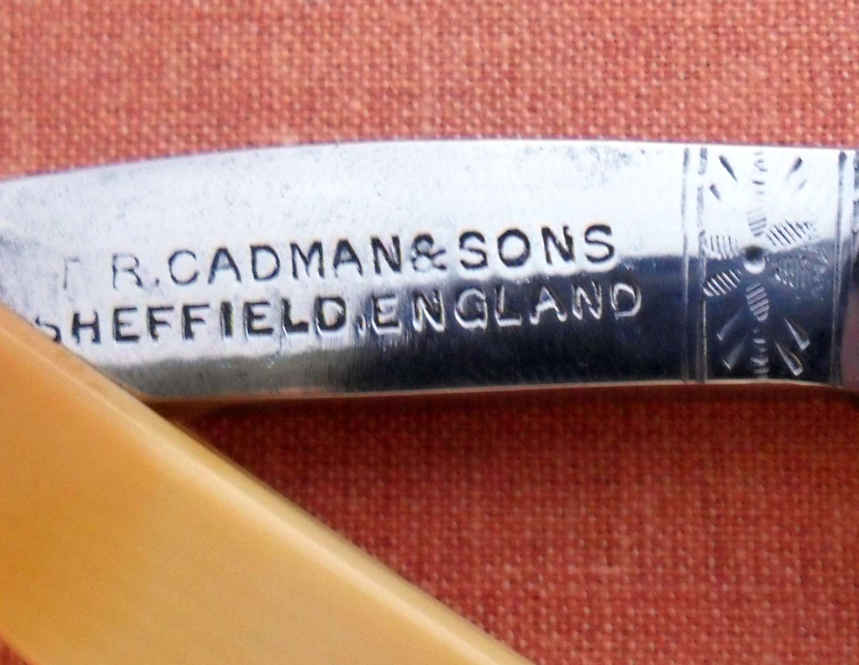 Сведения о производителе: http://britva.ru/articles/producers/cadman.php" onclick="window.open(this.href);return false; Ручка - целлулоид, имитация слоновой кости, в отличном состоянии. Ручка, пины и клинышек, по-видимому, родные. Заточена и полностью готова к бритью. Ширина полотна 17 мм, толщина в обухе 5,5 мм.