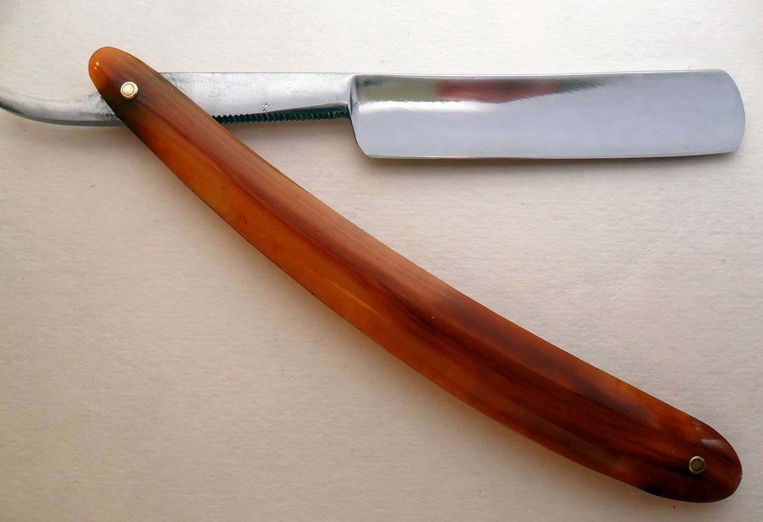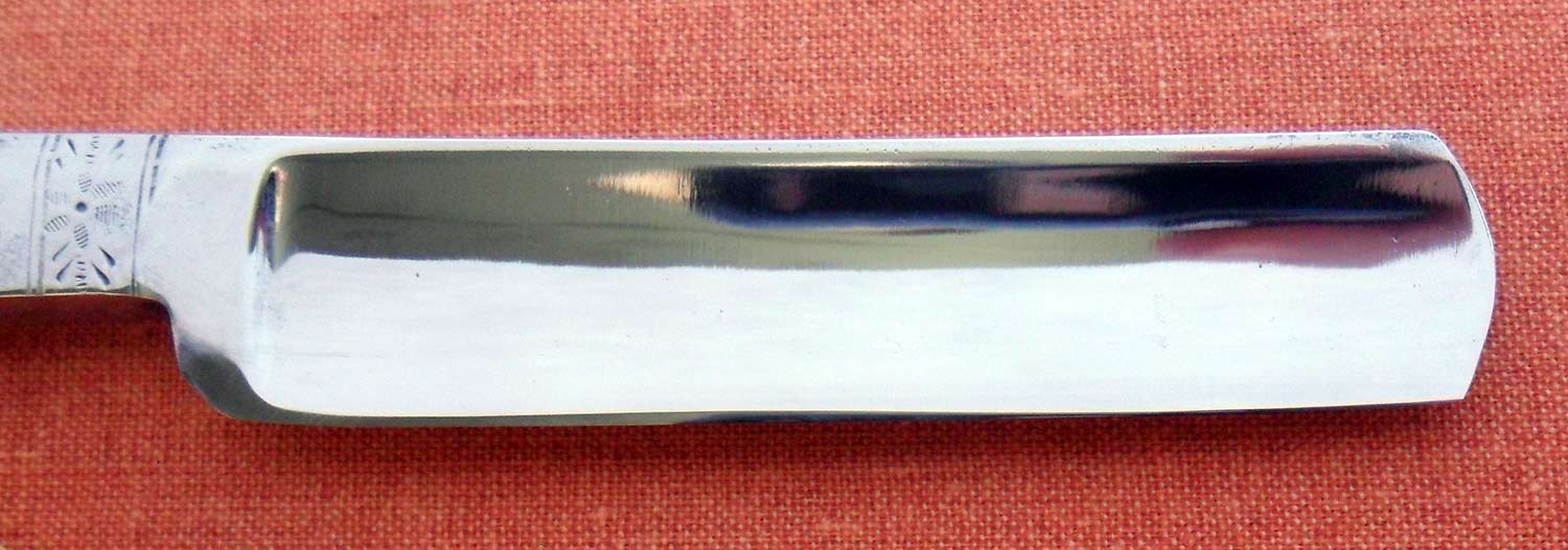 Сведения о производителе: http://britva.ru/forum/viewtopic.php?f=28&t=1149" onclick="window.open(this.href);return false; Судя по форме клинка и шрифту надписи предполагаю конец XIX века, менее вероятно начало XX века. Ручка - материал, предшественник современной микарты - пресованный картон с клеем. Ручка явно фабричная, родная или нет- под вопросом. Клинышек из металла. Геометрия quarter hollow, отлично точится. Очень мягко снимает щетину, хотя требует немного большего навыка в сравнении с обычными холлоу граундами. Естесственно, заточена и полностью готова к бритью. Ширина бритвы 19 мм, толщина обуха 4,5 мм.