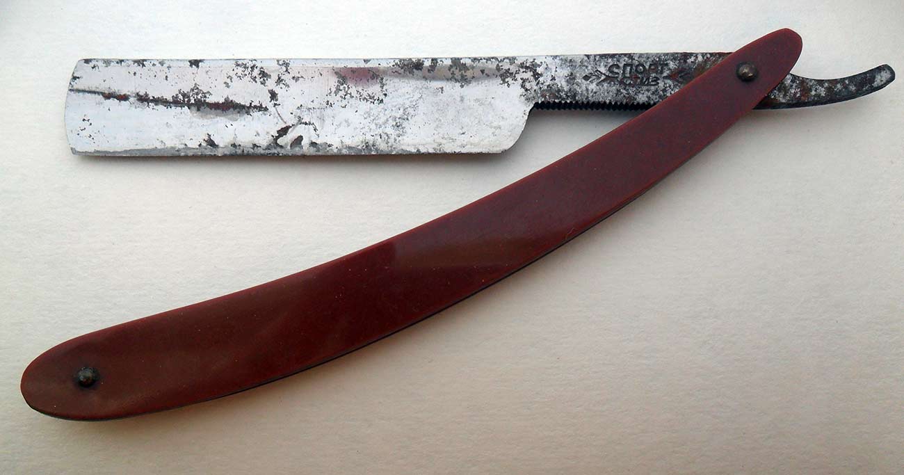 Но, вообще коррозия тут не такая глубокая была, как на англичанах. Все же бритва намного моложе (думаю, 60-70-е годы), хотя и хранилась варварски. Так что бритва вполне еще кого-то порадует