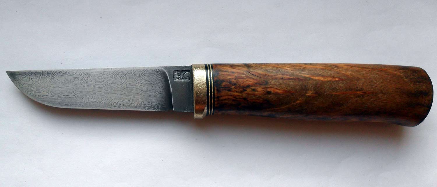 Сегодня у меня пополнение - вот такой вот небольшой ножичек из украинского дамаска и карельской березы. Сфотографировать достойно не получилось.