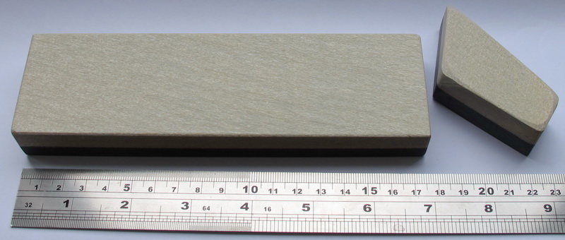 Вот такой вот бельгиец с нагурой, select grade, 175х50х22мм. Толщина рабочего слоя 12-14мм. Цвет на последнем фото удачнее всего получился. Бледно-кремово-желтый, в глубине отсвечивает голубовато-зеленоватым, с интересной сетчатой текстурой. На противоположных по диагонали углах трещинки, залиты тем же клеем, которым рабочий слой приклеен к подложке.