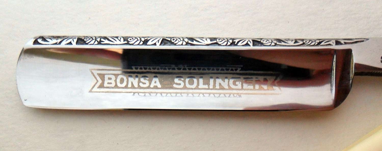 Надпись на обратной стороне эрля: 9853 1/2 Надпись на полотне: BONSA SOLINGEN Сведения о производителе: http://britva.ru/forum/viewtopic.php?f=27&t=469" onclick="window.open(this.href);return false; Ручка из целлулоида, в прекрасном состоянии. Ручка и пины родные. Сталь на бритве довольно твердая, бреет отлично. Естесственно, заточена и полностью готова к бритью. Ширина полотна 18 мм, толщина в обухе 4.5 мм. В комплекте штатный футляр в очень приличном состоянии.