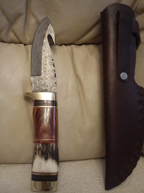Re: Продам нож.Дамасская сталь.Продам охтничий нож.Новый.Размеры ...общая длина 22 см,длина лезвия 11 см.Вес 250 грамм.Чехол из коровьей шкуры.Вес чехла 75 гр.Ручка олень+красное дерево.Качество отличное.Цена 45 евро(почтовые расходы включены).