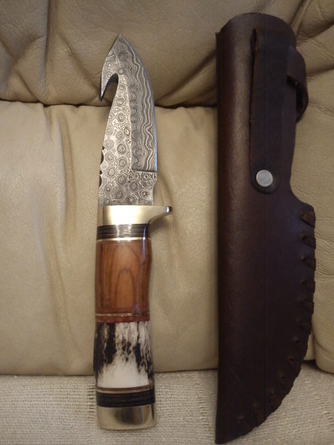 Re: Продам нож.Дамасская сталь.Продам охтничий нож.Новый.Размеры ...общая длина 22 см,длина лезвия 11 см.Вес 250 грамм.Чехол из коровьей шкуры.Вес чехла 75 гр.Ручка олень+красное дерево.Качество отличное.Цена 45 евро(почтовые расходы включены).