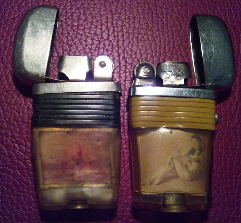 С девушкой - классический ВУ Лайтер от Скрипто С пейзажем Ленинграда, таки, наш, отечественный Видно Хрущёв накупил, а пока освоили, уже 70е...