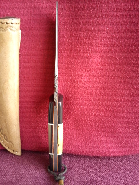 Spoiler Show Продам охтничий нож.Новый.Размеры ...общая длина 23,5 см,длина лезвия 11 см.Вес 365 грамм.Чехол из коровьей шкуры.Ручка верблюд+буйвол.Качество отличное.Цена 45 евро(почтовые расходы включены). Spoiler Show
