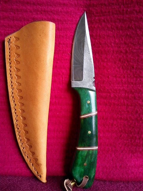 Re: Продам нож.Дамасская сталь.Продам охтничий нож.Новый.Размеры ...общая длина 23 см,длина лезвия 11.5 см.Вес 235 грамм.Чехол из коровьей шкуры.Ручка Blue Pakka Wood(что за дерево не знаю