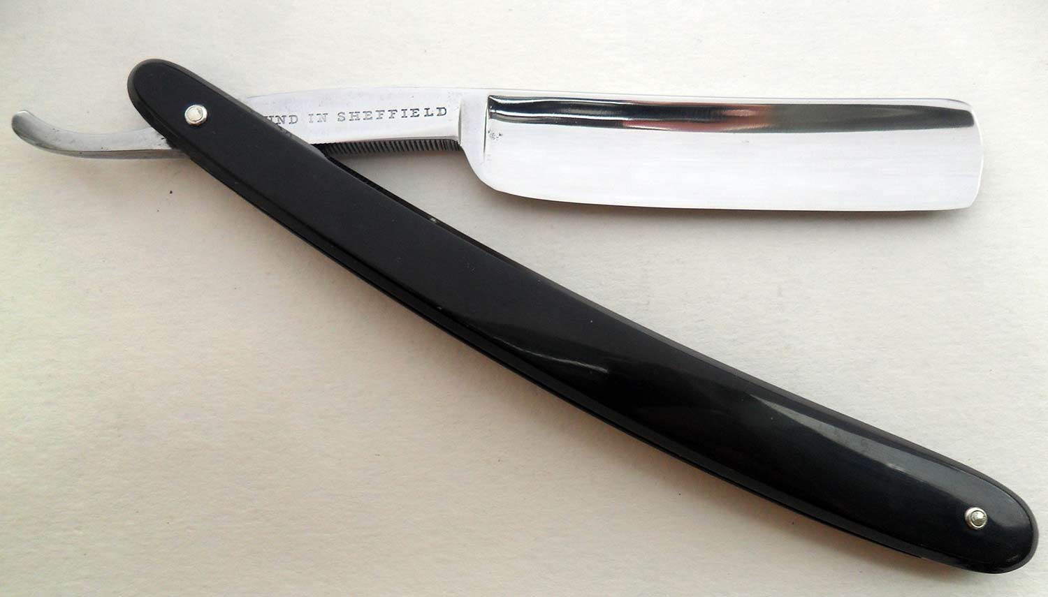 Ручка - целлулоид (имитация слоновой кости), не родная, но снята с не менее именитого Geo Wostenholm  Возле срединного пина с одной стороны имеется трещинка, уверен, что проблем она не создаст.