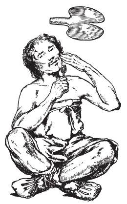На рисунке изображен мужчина за бритьем, его бритва очень характерна для Англии бронзового века; вместо мыльной пены он, наверное, смазывал лицо маслом.