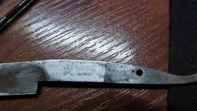 Помогите пожалуйста определить бритву, нашел я ее на барахолке в убитийшем состоянии, ручка была приклепана гвоздем на лезвии ржавчина. Брал ее для того чтобы сделать небольшой нож для кожи ну и ради интереса решил поискать в интернете ее описание, и так ничего не нашел. Прочитав много тем на Вашем форуме есть предположение, что это какая то медицинская бритва так как железная ручка, а дальше надеюсь на Ваш опыт. Представляет ли она какую либо ценность или интерес?