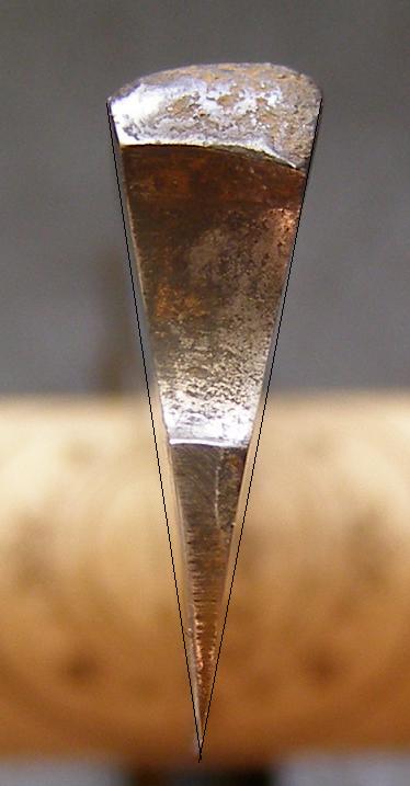 Видно, что реальный клин не представляет собой равнобедренный треугольник, это и понятно. Назвать эти бритвы, бритвами, имеющими вогнутость так же нельзя. Клины скорее "впуклые", чем выпуклые