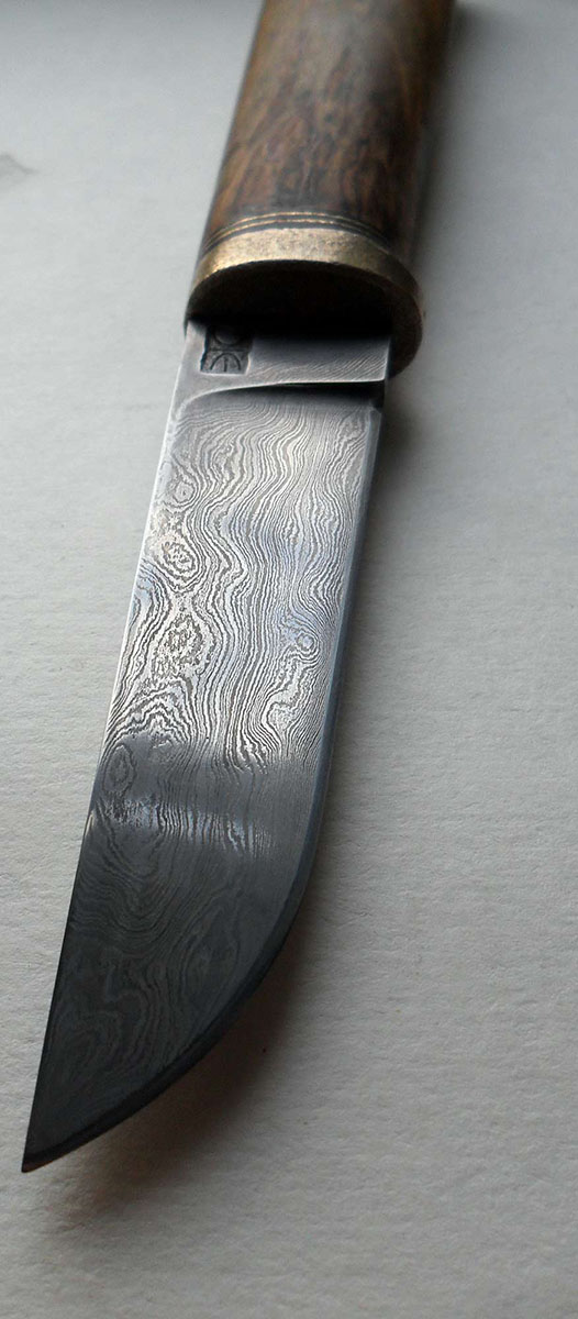 Клинок из дамаска У8А+ШХ15 примерно 300 слоев.