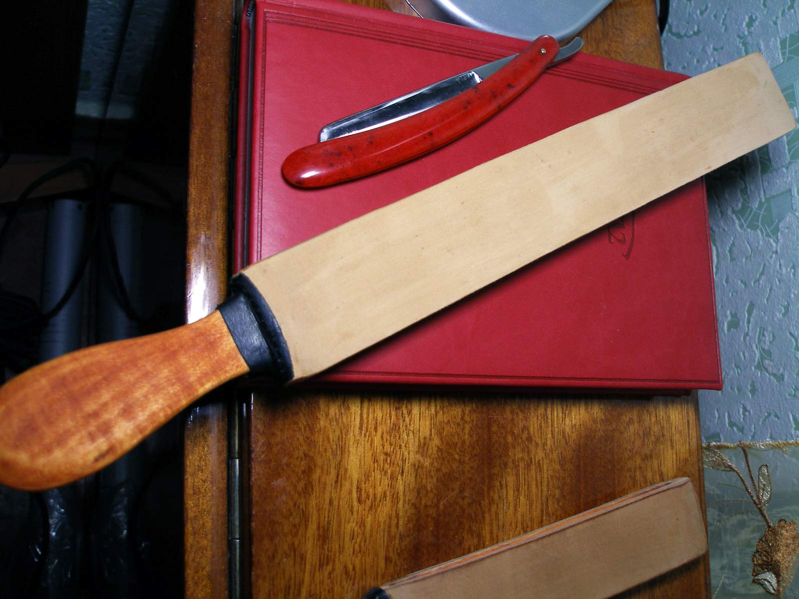 Липа. Длина общая 380мм, рабочая поверхность 275мм, ширина 43мм, кожа 4мм. ПРОДАНА правка+ Show