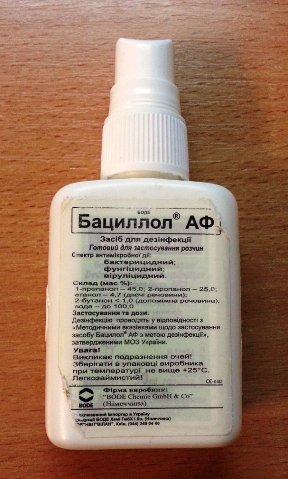 Re: СтерилизацияВ стоматологии применяют для обеззараживания инструментов средство Bacillol AF.