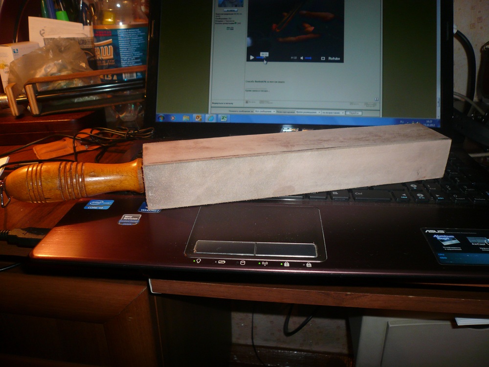 отличная правка получилась покажу и свои.та что сверху-брусок оклеенный свинной вышкуренной кожей 4 мм.снизу соответственно вышкуренный брючный ремень советского производства.