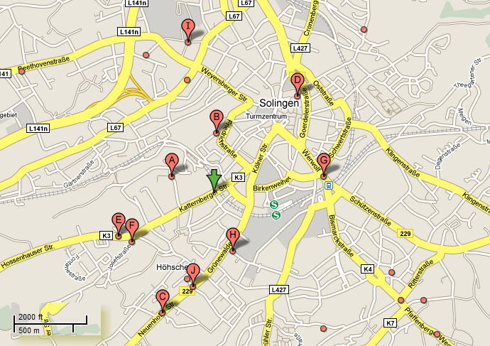 Re: C.FRIEDR. SCHMIDT SOLINGEN, REVISOR (!)Не мастер C.FRIEDR. SCHMIDT, а хозяин фабрики. REVISOR - торговая марка. А то что она находилась в городе Золинген - это не обсуждается... Факт - на улице Katternbergerstrasse 81, район Золингена Höhscheid. ( Мимо этого местечка приходилось ездить очень много раз, т.к. мы жили в Turmzentrum). Фабрика, не мастерская. Поискал - вот нашёл кое-что: Фабрика открылась в 1813 году. Источник - см. список литературы на сайте (Ein Streifzug durch funf Jahrhunderte Messer + Klingen - http://www.britva.ru/articles/sources/literature/#b09" onclick="window.open(this.href);return false; ) . А вот дата закрытия - данные неподтверждённые, можно ориентироваться на эти цифры. Кстати, они пишут что дата закрытия - конец 50-х, начало 60-х. Возможно ТМ REVISOR была зарегистрирована в 1919 году (из таких же неподтверждённых источников). Первые упоминания о мастерах в Золингене с фамилией Schmidt в каталогах появились в 1684 году. Около 15 мастеров и основателей кузнечного дела записано там с тех времён с такой фамилией. Кто из них был предок основателя C.FRIEDR. SCHMIDT - непонятно... Кстати, вроде как у нас в продаже есть: http://www.britva.ru/shop/detailed.php?pid=0883300#big" onclick="window.open(this.href);return false; А на сайте, где Вы покупали - вообще лажа написана: Фирма существовала с 1919 по 1990 года. http://britvasolingen.ru/brevisor-solin ... p-269.html" onclick="window.open(this.href);return false; Там вообще много чего написано. Исторически в этом районе много фирм с этой фамилией (см.карту, зелёный - C.Friedr.), видимо много веков они занимались металлом: Emil Schmidt GmbH - Grundstr. 33, 42655 Solingen, Germany - 0212 813872 - 0.4 km W Carl Schmidt Sohn AG Saarstr. 14-16, 42655 Solingen, Germany - 0212 222390 - 0.5 km N Fahrschule Schmidt - Neuenhofer Str. 69, 42657 Solingen, Germany - 0212 5999199 - 1.1 km SW Jeans-Palast Schmidt + Görgens GmbH & Co. Zweite Vertriebs KG Hauptstr. 70, 42651 Solingen, Germany - 0212 209694 - 1.1 km NE Beate Schmidt Katternberger Str. 226, 42655 Solingen, Germany - 0212 815562 - 0.9 km SW Rupert Schmidt Josefstr. 13, 42657 Solingen, Germany - 0212 80816 - 0.8 km SW Schmidt & Deichmann Werwolf 54, 42651 Solingen, Germany - 0212 2308599 - 0.9 km E Thomas Schmidt Gasstraße 10, 42657 Solingen, Germany - 0212 1396096 - 0.5 km S Unverified listing Schmidt Luisenstr. 19, 42655 Solingen, Germany - 0212 203938 - 1.3 km N Bora Bora P.Schmidt uMBeeh GbR Neuenhofer Str. 114, 42657 Solingen, Germany - 0212 5949310 - 0.8 km S Многие из них занимались и занимаются производством изделий из металла, в частности посуды и ножей (бритв не знаю). И это только в непосредственной близости, а Золингену - море, а по Германии, вообще полчу... В общем вот такое моё расследование. Ремонт опасных бритв, звонить с 11-00 до 23-00, +79267729357, (viber, whats app, telegram, VK), спросить Олега.