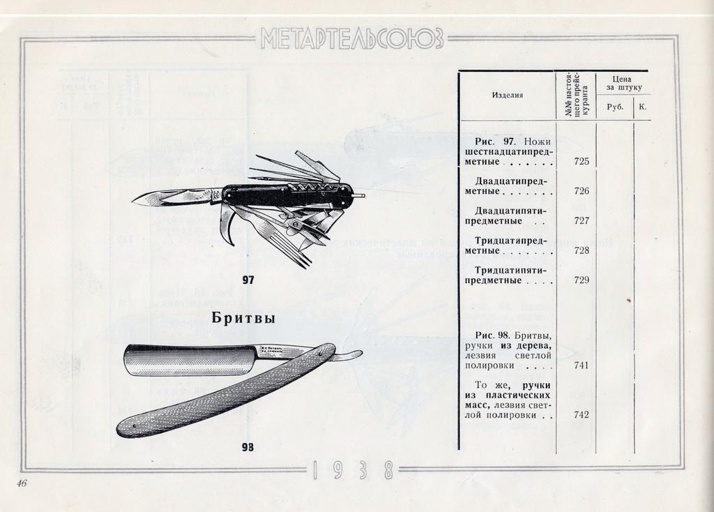 - Бритва Ворсменской артели Кр. Октябрь в каталоге Метартельсоюза 1938 года