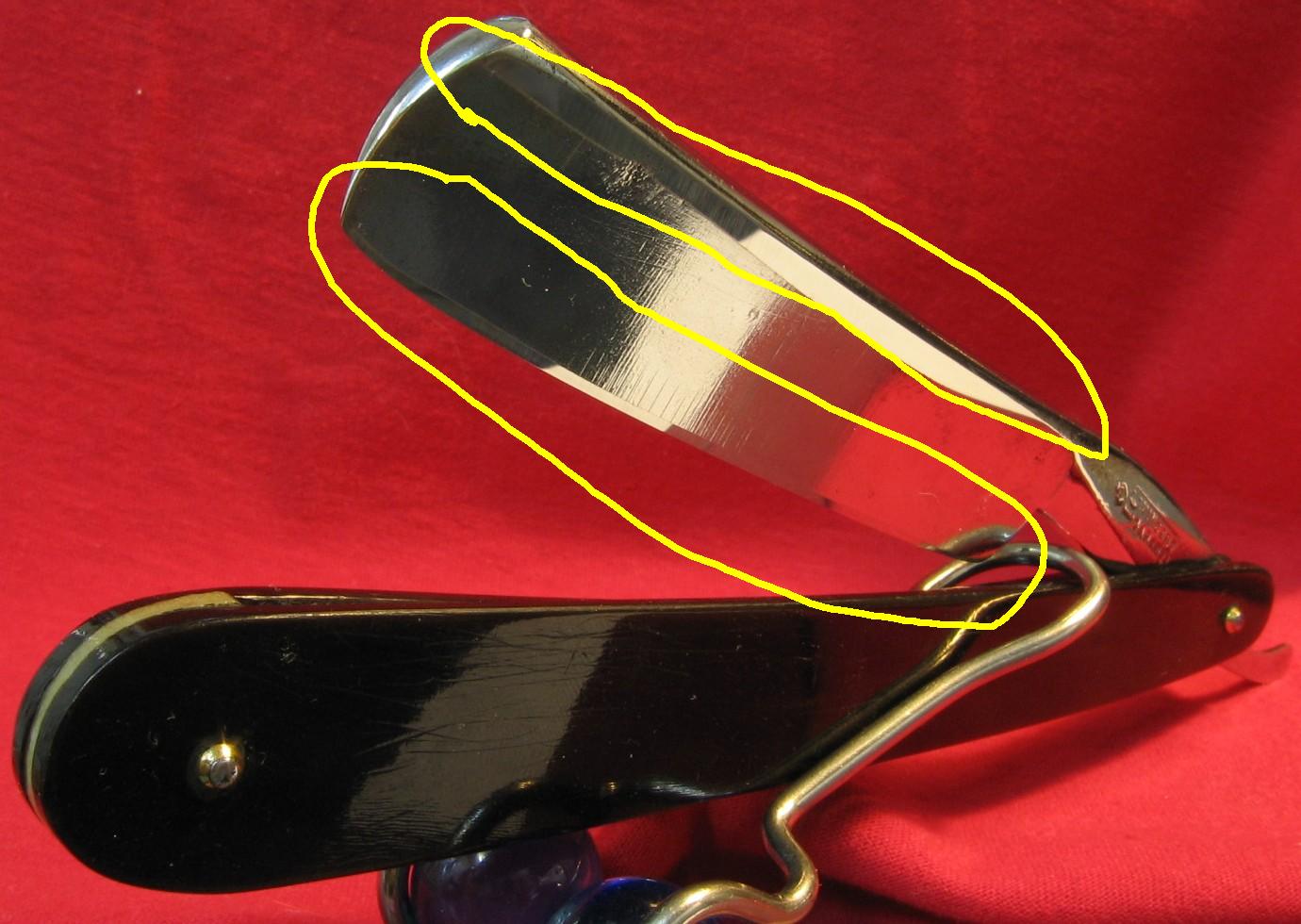 Если на YouTube набрать "straight razor sharp test", то в тесте с разрезанием волоса видно, что он переламывается от небольшого нажатия, а у меня волос режется только если тянуть его поперек режущей кромки. Он сперва цепляется, а затем перерезается. Причем если тянуть по росту волоса, а не против, он даже не зацепится и не перережется.